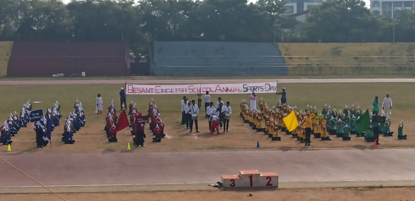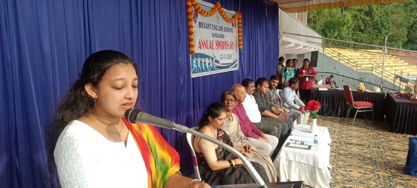 The annual sports meet of Besant English Medium School, held on November 12, was conducted with great splendour at the Mangala Stadium in the city. The event was inaugurated by the chief guest, Mr. Bharat K, the Physical Education Supervisor of Mangalore North Zone, who lit the ceremonial lamp.